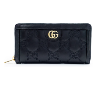 GUCCI雙G MATELASSÉ縫線紋皮革拉鍊長夾